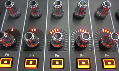 Anillos LED en forma de herradura: Mejoran la visibilidad lateral de los potenciómetros rotatorios y ofrecen una referencia visual clara del estado de los parámetros, incluso desde ángulos difíciles.
